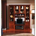 Majoritatea spațiilor sunt deschise și aerisite. Nișa pentru televizor este generos dimensionată, încadrată de două rafturi ce pot adaposti foarte bine aparatură audio- video diversă. Cele trei vitrine acoperă o serie de rafturi mai mici care sunt făcute să expună frumos obiectele din interior. Cele două dulapuri, nu foarte mari, le completează într-un mod natural. Stilul clasic se regăsește în liniile simple și detaliate, în culoarea bogată și forma precisă a fiecărei componente în parte. Modernul se regăsește în spațiul mare, deschis, în corpul aparent suspendat și tendința de a îmbina utilul cu plăcutul.
