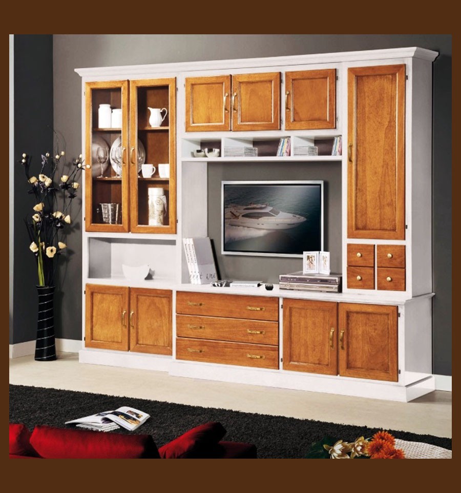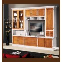Compartimentarea bogată o face practică și utilă, iar alternarea culorilor de alb și auriu poate înveseli orice încăpere. Corpurile mari și spațioase formate din vitrina și dulapul care alcătuiesc partea superioară a lateralelor se continuă cu sertare încăpătoare și dulapuri de mai mici dimensiuni care încadrează perfect centrul deschis, ce poate fi folosit în funcție de preferințele fiecăruia. Ca o completare, ca ansamblul să fie perfect apar în peisaj cele patru sertare și rafturi de dimensiuni reduse pentru a îndulci linia masivă a mobilei.